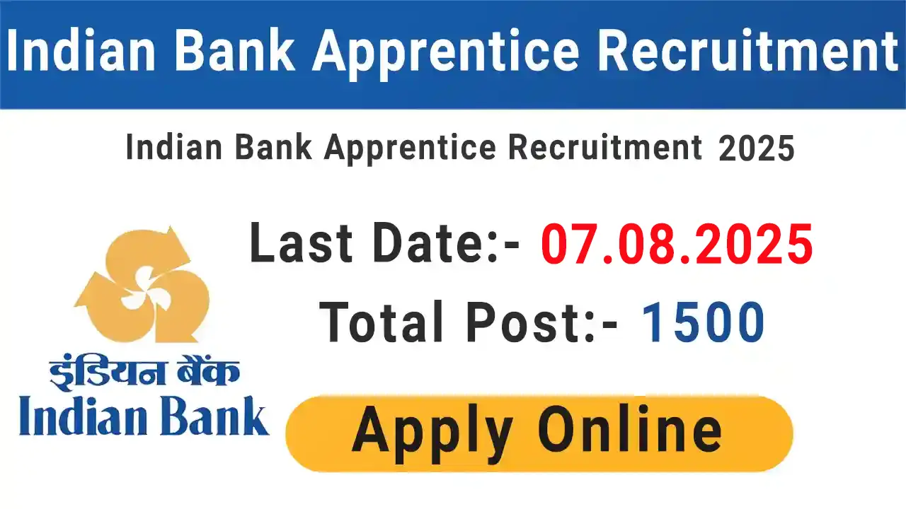 Indian Bank invites online applications for recruitment to the post of Apprentices under Apprentices Act 1961 for 1500 vacancies. All eligible and interested male and female candidates can apply online at Indian Bank official website indianbank.in from 18th July 2025 to till the application last date 07th August 2025 for Apprentice recruitment in Indian Bank. Interested candidates read the full notification carefully, before applying online. Indian … Read more