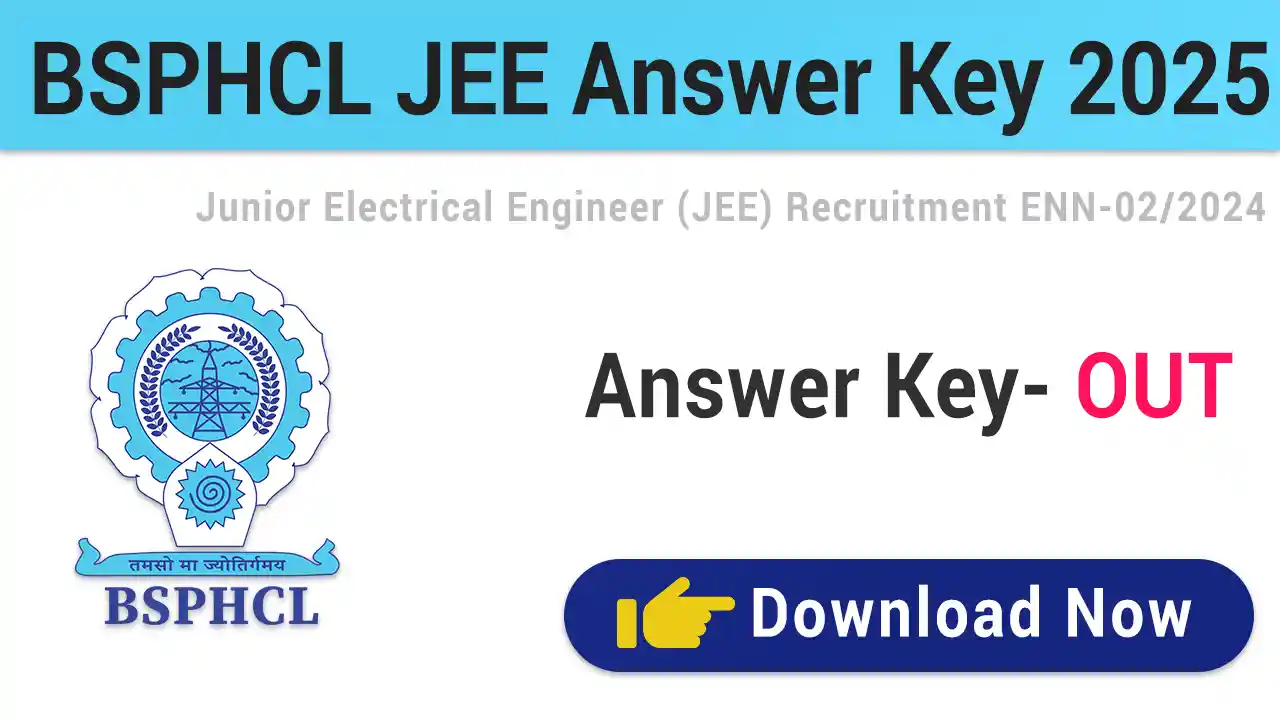 Bihar State Power Holding Company Ltd (BSPHCL) has released online computer based test (CBT) answer key for recruitment to the post of Junior Electrical Engineer (JEE) and except these posts Correspondence Clerk and Store Assistant for 1034 vacancies. The computer based test (CBT) was successfully conducted on 16th June 2025 and from 20th June 2025 to 30th June 2025 as per the notified examination center by the Company. All eligible male and female candidates can download answer key online at BSPHCL official website bsphcl.co.in from 26th June 2025 onwards for Junior Electrical Engineer (JEE) recruitment examination 2025.