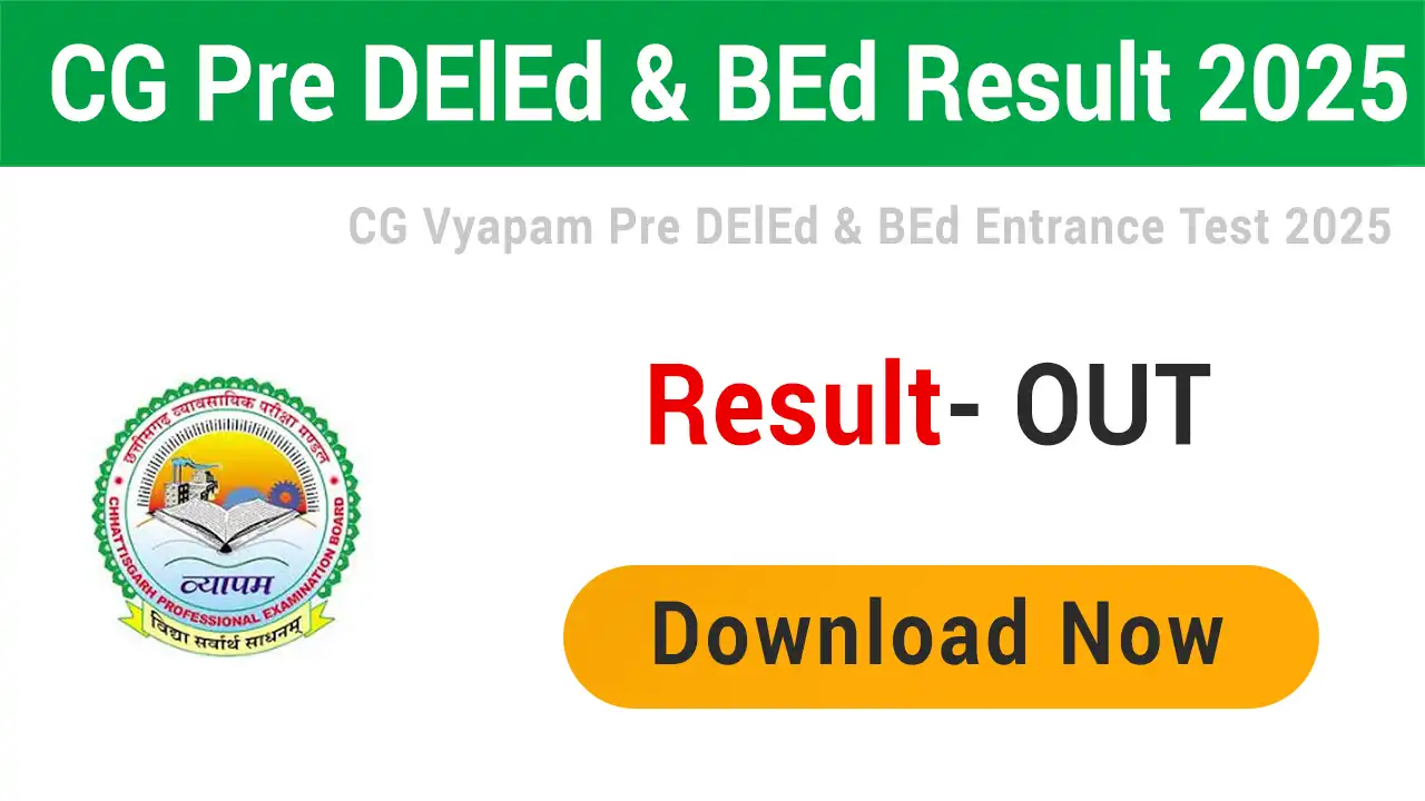 CG Vyapam Pre DElEd BEd Result 2025 Download (OUT)