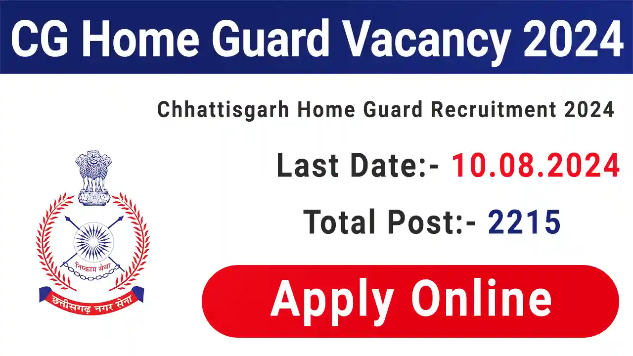 Chhattisgarh Fire and Emergency Services invites online applications for recruitment to the post of Home Guard / Swayam Sevi Nagar Sainik for 2215 vacancies under CG Home Guard department. All eligible and interested male and female candidates can apply online at CG Fire and Emergency Services official website firenoc.cg.gov.in from 10th July 2024 to till the application last date 10th August 2024 for Home Guard recruitment in Chhattisgarh.