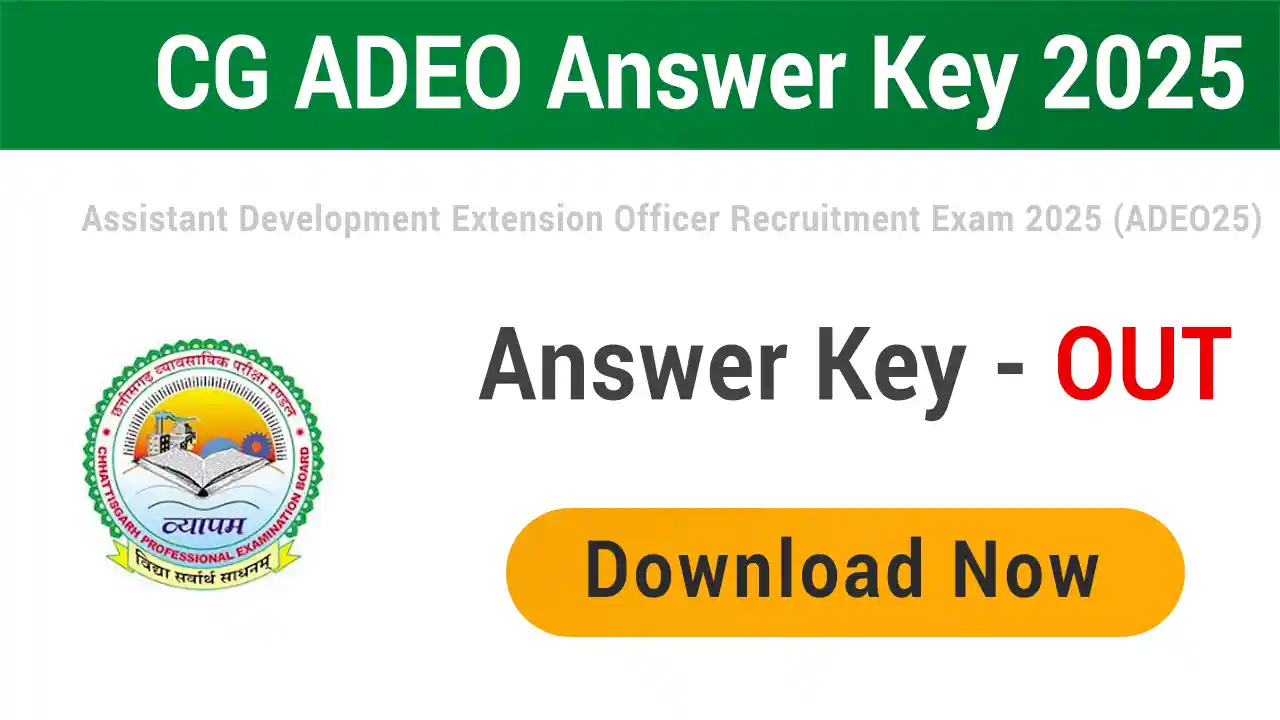 CG Vyapam has released online model answer key in PDF for recruitment to the post of Assistant Development Extension Officer Recruitment Exam (ADEO) for 200 vacancies in Panchayat and Rural Development Department, Development Commissioner’s Office. The written examination was successfully conducted on 15th June 2025 across the state as per the notified examination center by the board. All eligible aspirants can download answer key online at CG Vyapam official website vyapam.cgstate.gov.in from 25th June 2025 onwards for Assistant Development Extension Officer Recruitment Exam 2025 (ADEO25).