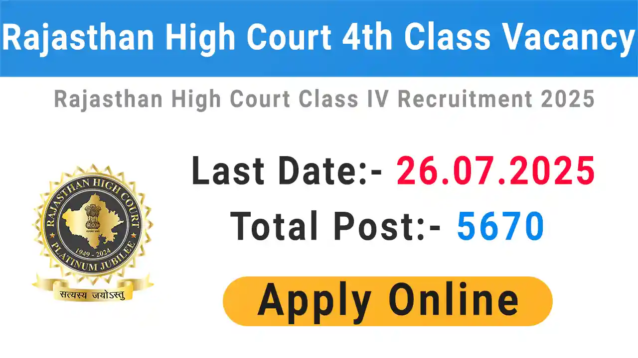 Rajasthan High Court (HCRAJ), Jodhpur invites online applications for recruitment to the post of 4th Class Staff (Office Peon/ Equivalent Post) for 5670 vacancies in RHC, RSJA, RSLSA, District Courts and DLSAs. All eligible and interested male and female candidates can apply online at HCRAJ official website hcraj.nic.in from 27th June 2025 to till the application last date 26th July 2025 for Class IV Employees recruitment in Rajasthan High Court.