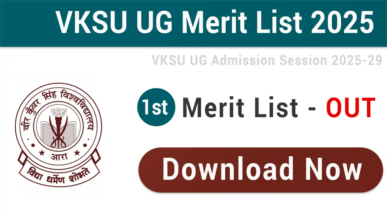 Veer Kunwar Singh University (VKSU), Ara has released online 1st merit list or first selection list and cut off for taking admission in 1st semester of Undergraduate (UG) course to the academic session 2025-29 for 4 year programme under Choice Based Credit System (CBCS). All eligible candidates can download 1st merit list online at VKSU official website vksu.ac.in or vksuexams.com from 30th June 2025 onwards for UG admission session 2025-29.